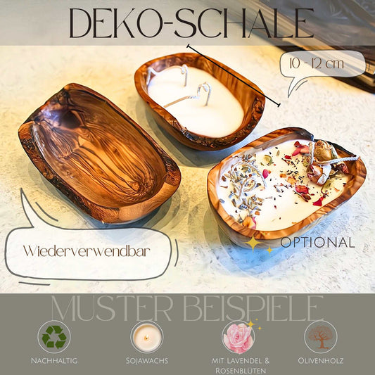 Sojawachskerze Olivenholz-Schale mit/ohne Blüten