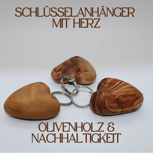 Herz Schlüsselanhänger: Liebe in Olivenholz in 3-D, Holzgeschenk für Verliebte